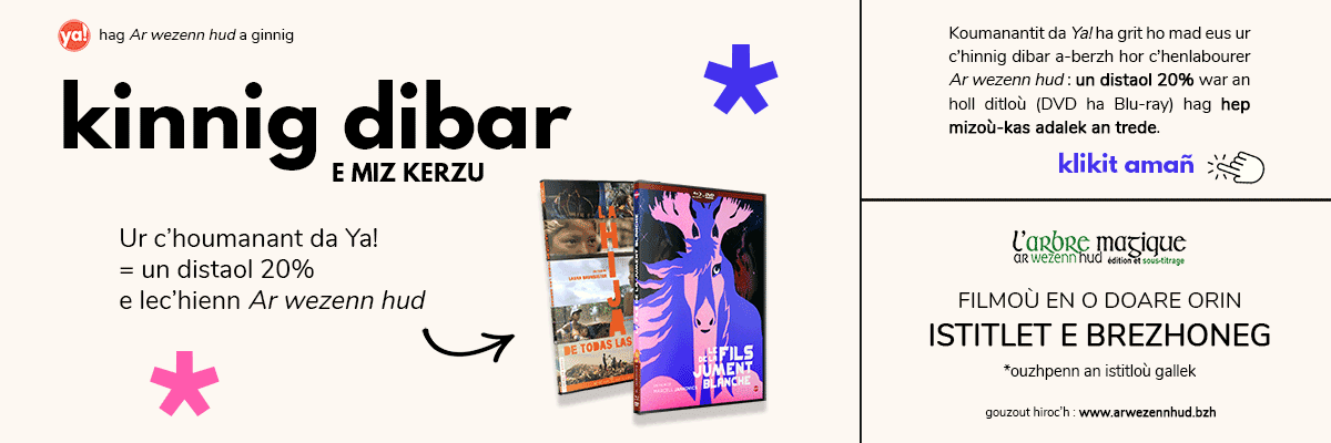 L’association Ar Wezenn Hud, l’Arbre Magique, est une association loi 1901, pour le développement et la diffusion des langues régionales. Nous proposons à ceux qui parlent ou apprennent la langue bretonne, de la lire pour la première fois d’une manière ludique, en regardant des grands films de cinéma, classiques ou nouveaux, sous-titrés en langue bretonne.